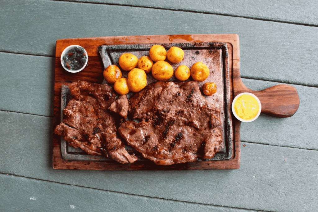 Two steaks, one bone. The T-bone combines a strip on one side and a tenderloin on the other. The only difference between a T-bone and a Porterhouse is size. The Porterhouse has a larger tenderloin section, so it’s basically the heavyweight version.